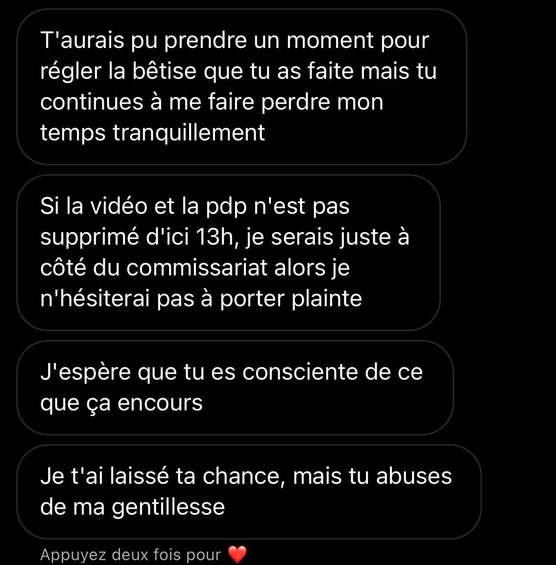 elle en a été informée et là elle me menace de porter plainte aujourd’hui si je supprime pas mon tiktok