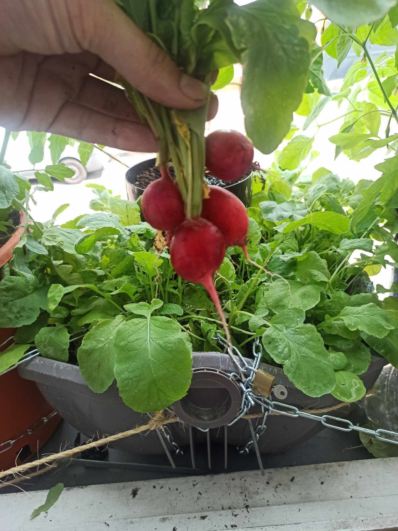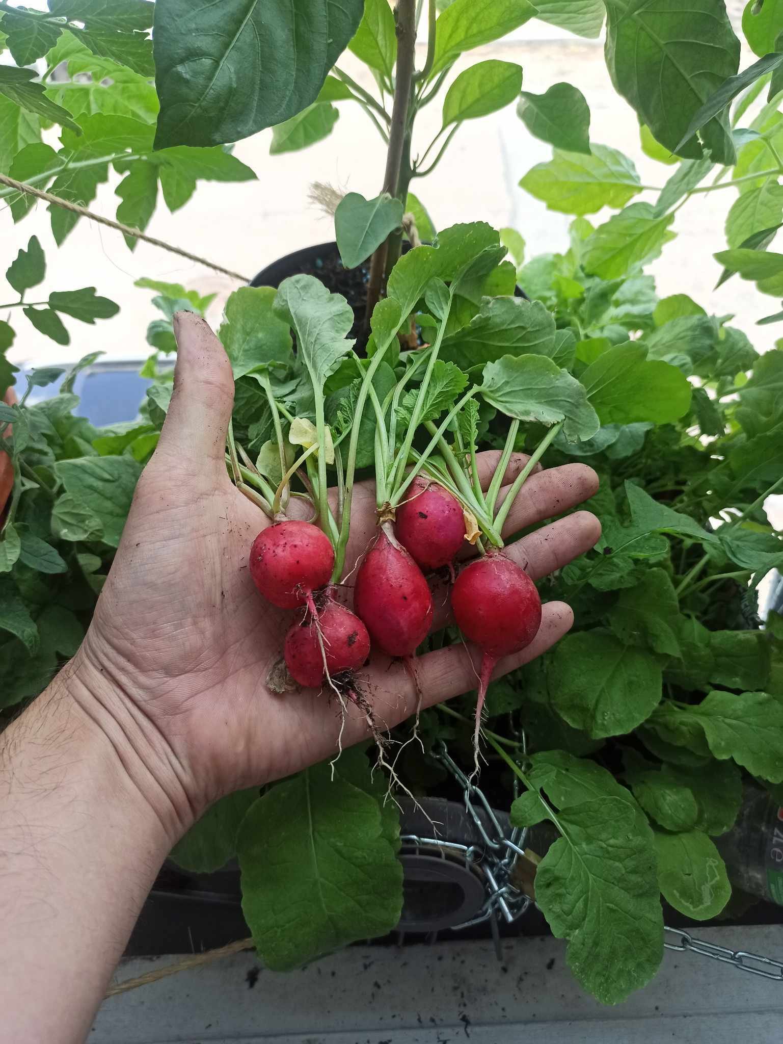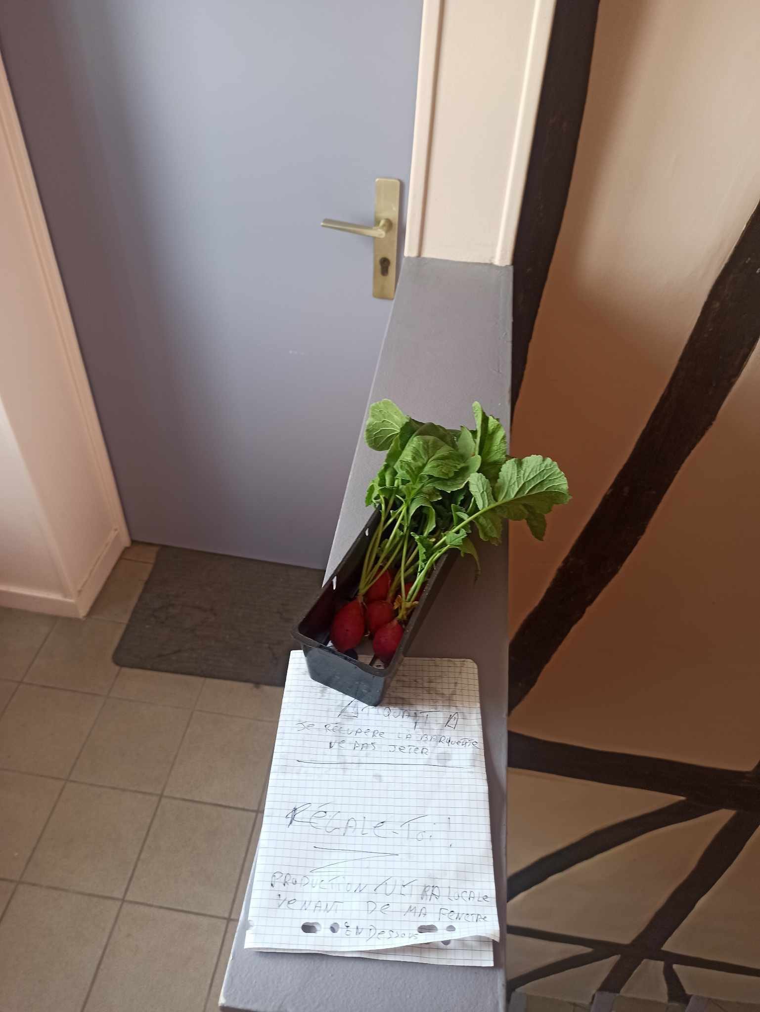 La récolte du jour + dons de ces radis à mon voisin du dessus, on en parle de ses monstres ? Ils sont ultra gros, j'en ai jamais vu d'aussi gros dans le commerce, y'en a un qui va avoir une petite surprise en rentrant du taff