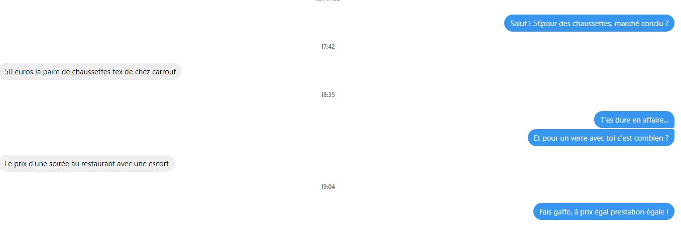 Répond lui qu'elle est cher mais que dans ce cas c'est toi qui décide du lieu et de la date. (ça fait gar qui prend des décision et sûr de lui)