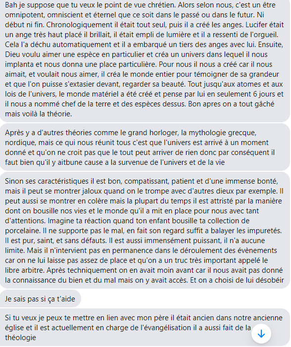 Étant un immense pyj' le reste de ma scolarité au collège je me suis moqué d'elle pour faire le yeslife, c'est seulement quatre ans après le bac que je me suis rendu compte que j'étais un connard, je lui ai envoyé un LONG pavé pour m'excuser, on a un peu discuté de tout, de religion etc et on a convenu qu'on allait se retrouver ce mois--ci, ce qui me met en PLS parce que je sais pas du tout comment me comporter avec elle, j'ai pas mal d'expérience avec les meufs mais elle c'est différent, elle m'a parlé du Christ au bout de 3 messages bordel comment je fais