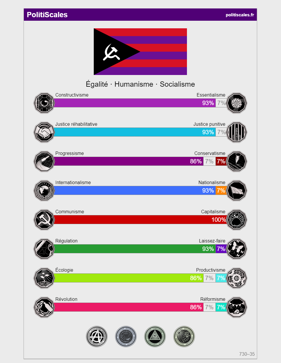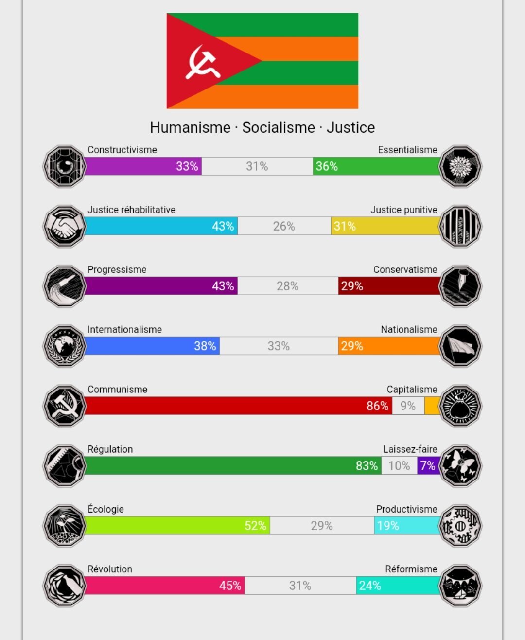 Par contre, le test aurait du opposer le socialisme au libéralisme, plutôt que le communisme au Capitalisme.
