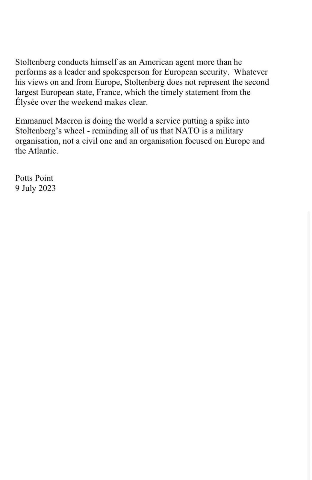 “Of all the people on the international stage the supreme fool among them is Jens Stoltenberg, the current Secretary-General of NATO. Stoltenberg by instinct and by policy, is simply an accident on its way to happen. Stoltenberg, in his jaundiced view, overlooks the fact that China represents twenty per cent of humanity and now possesses the largest economy in the world. And has no record of attacking other states, unlike the United States, whose bidding Stoltenberg is happy to do. Stoltenberg conducts himself as an American agent more than he performs as a leader and spokesperson for European security.”