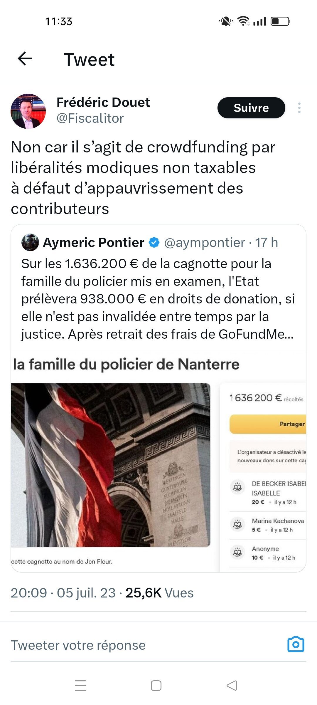 Ahi, un mec qui penser donner 20e à la famille du policier donne en réalité 12e à l'état