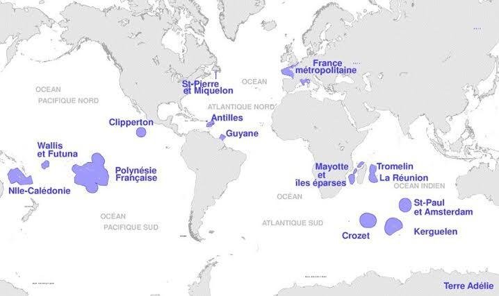 Voici ce que les DOM TOM apportent les desco… nous sommes le seul pays au monde à avoir autant de zones dans tout les océans.