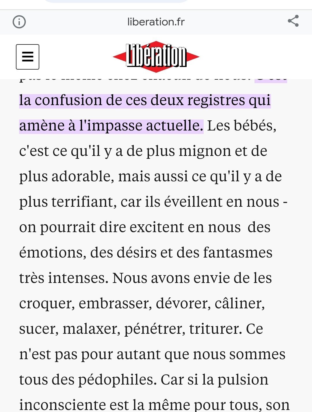 Le mec qui a écrit ça est un malade mental, à quel moment un bébé peut donner des idées sexuelles ? Sérieusement
