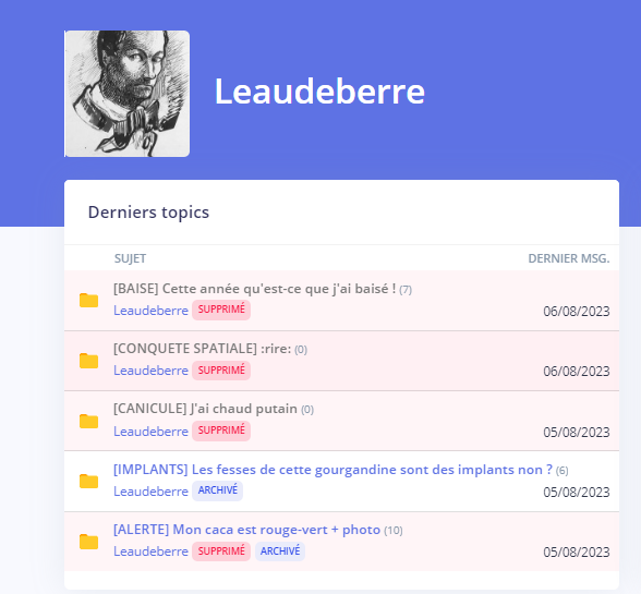 > > Leaudeberre le mythomane qui hallucine des messages tellement sa brisure est violente