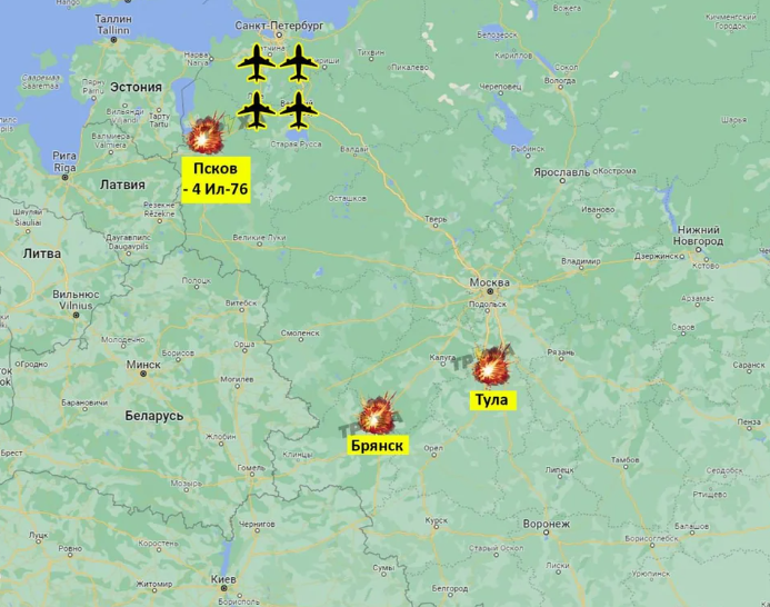 Attaques de drones sur différents cibles, dont 3 aéroports militaires russes .. drones en carton, j'oubliais de préciser