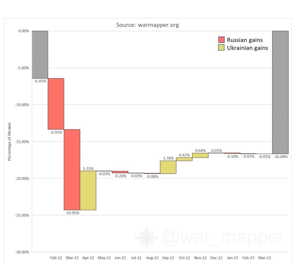 9% de conquetes depuis fevrier 22 ( le temps passe et le pourcentage diminue) et 7 % la crimée