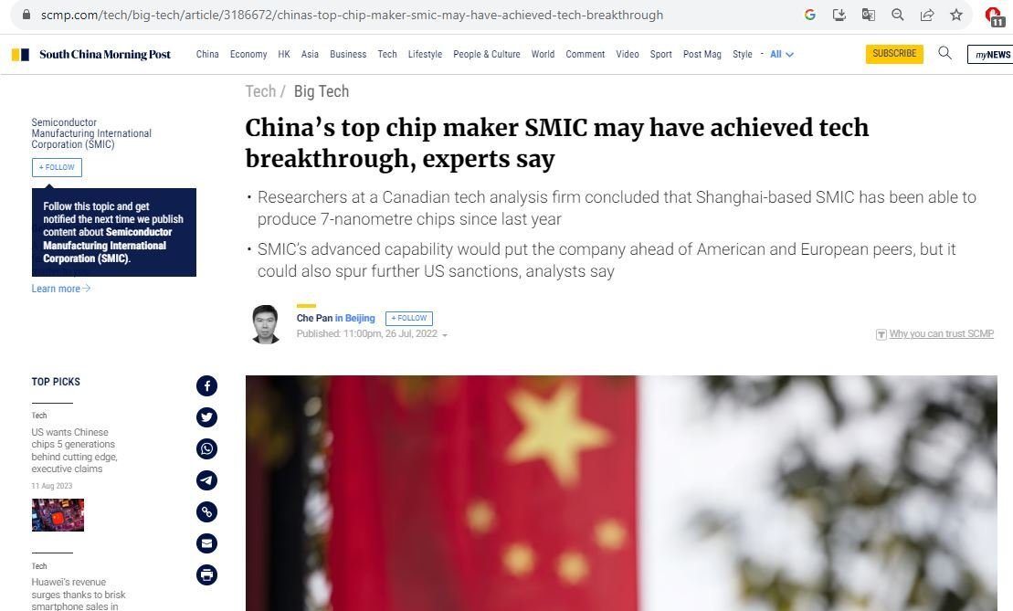 La Chine aura bientôt plus besoin de TSMC, ils viennent de graver en 7nm, TSMC meilleures au monde sont au 2nm, l'US et l'europe sont hors course avec aucune usine de production, ils commandent tout a TSMC, et si la chine arrive a faire ca, les russes vont en profiter![]()