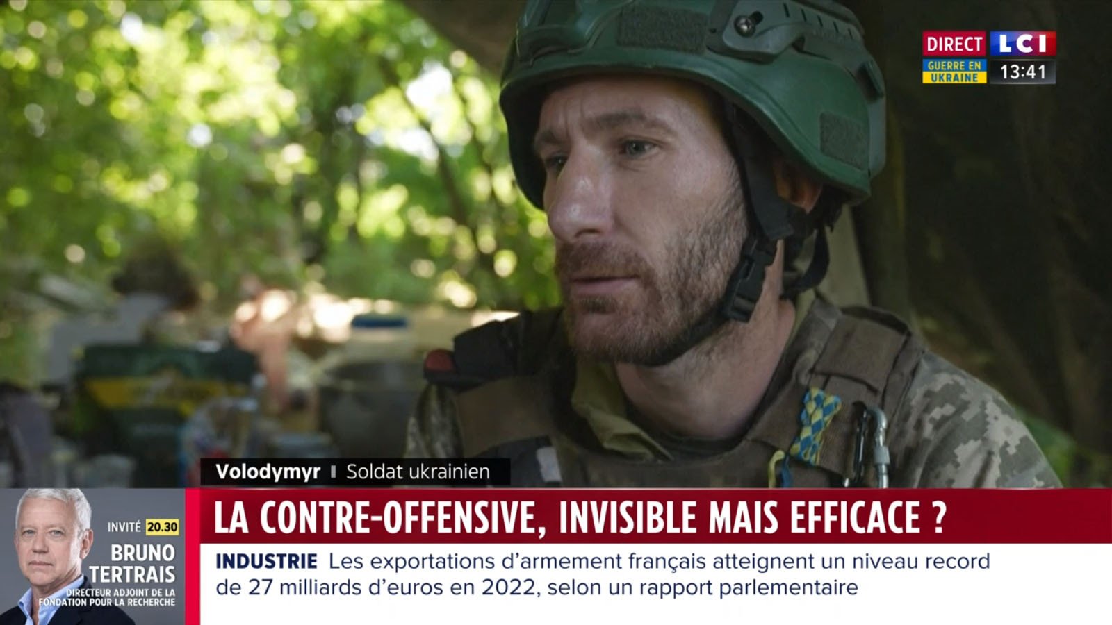 L'animateur de LCI qui commence l'émission par "avec cette douche froide, cette très mauvaise nouvelle pour les ukrainiens sur le front. Une avancée importante des russes sur le front nord-est"