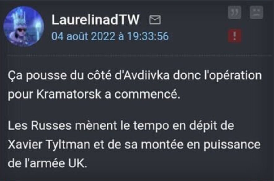 Les Propagandistes comme Noel ou la DSI qui bouclent depuis 2 mois sur leur prise de villages de 1 habitant et qui disent à chaque fois " ça va être la percée vous allez voir ce que vous allez voir "