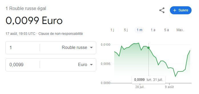 Le rouble et la bonne santé c'est finit.