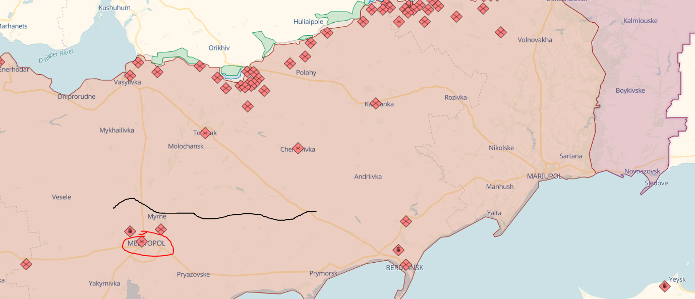 La citation dit que l'Ukraine va passer selon les américain de 80 km de Melitopol à quelques km (5-10 je suppose)