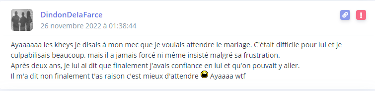 L'op est dégoûté d'etre vierge à 27 ans l'inversion des valeurs en l'espace de même pas 30 ans.