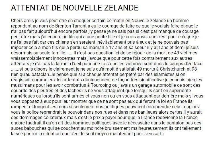 > > ils te disent qu'un génocide ou une tuerie de masse c'est l'extreme droite. ok