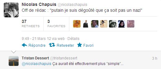 Votre petite dissonance cognitive habituelle, tu sais. La tolérance et le non-amalgame pour les assassins du tiers-monde, la répression pour des mots d'un français hélas moins souple que vous de l'échine.