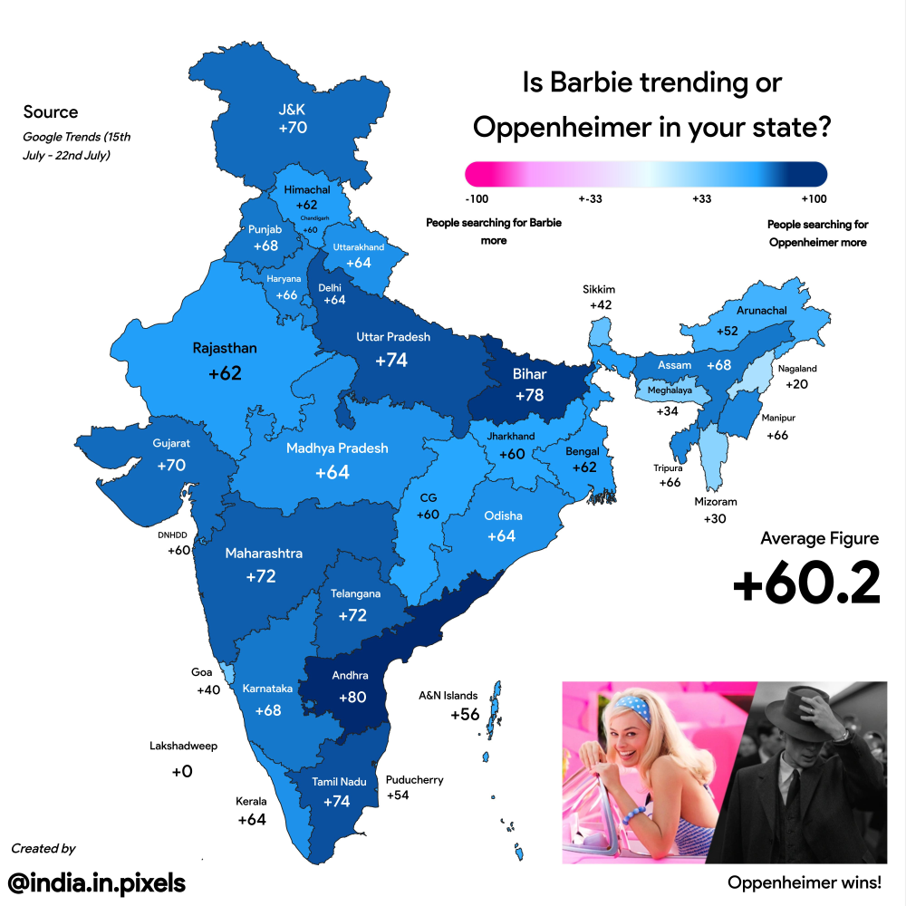 + Différence de popularité entre USA et Inde :