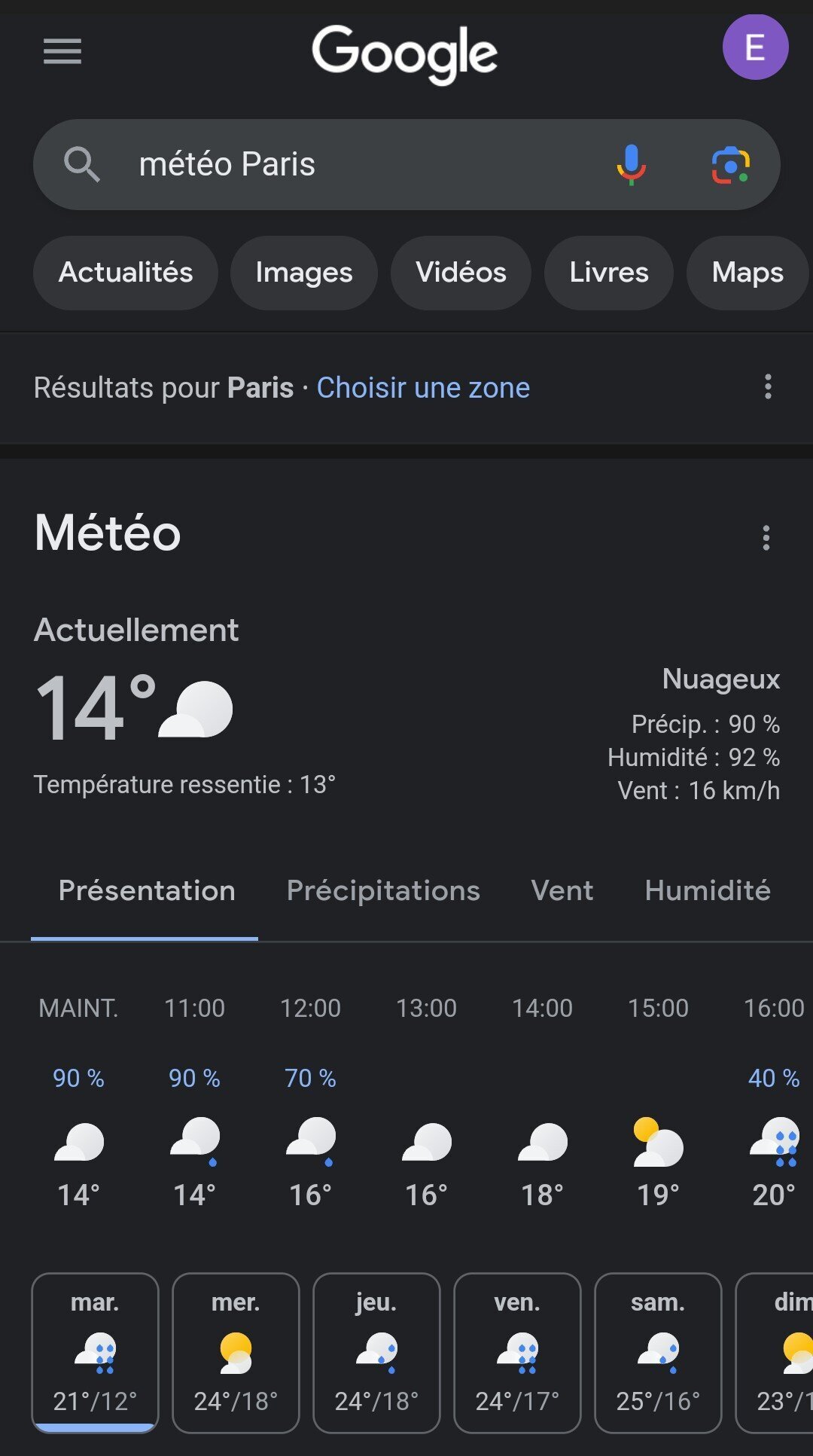 15 degrés et pluie actuellement dans ma ville en IDF
