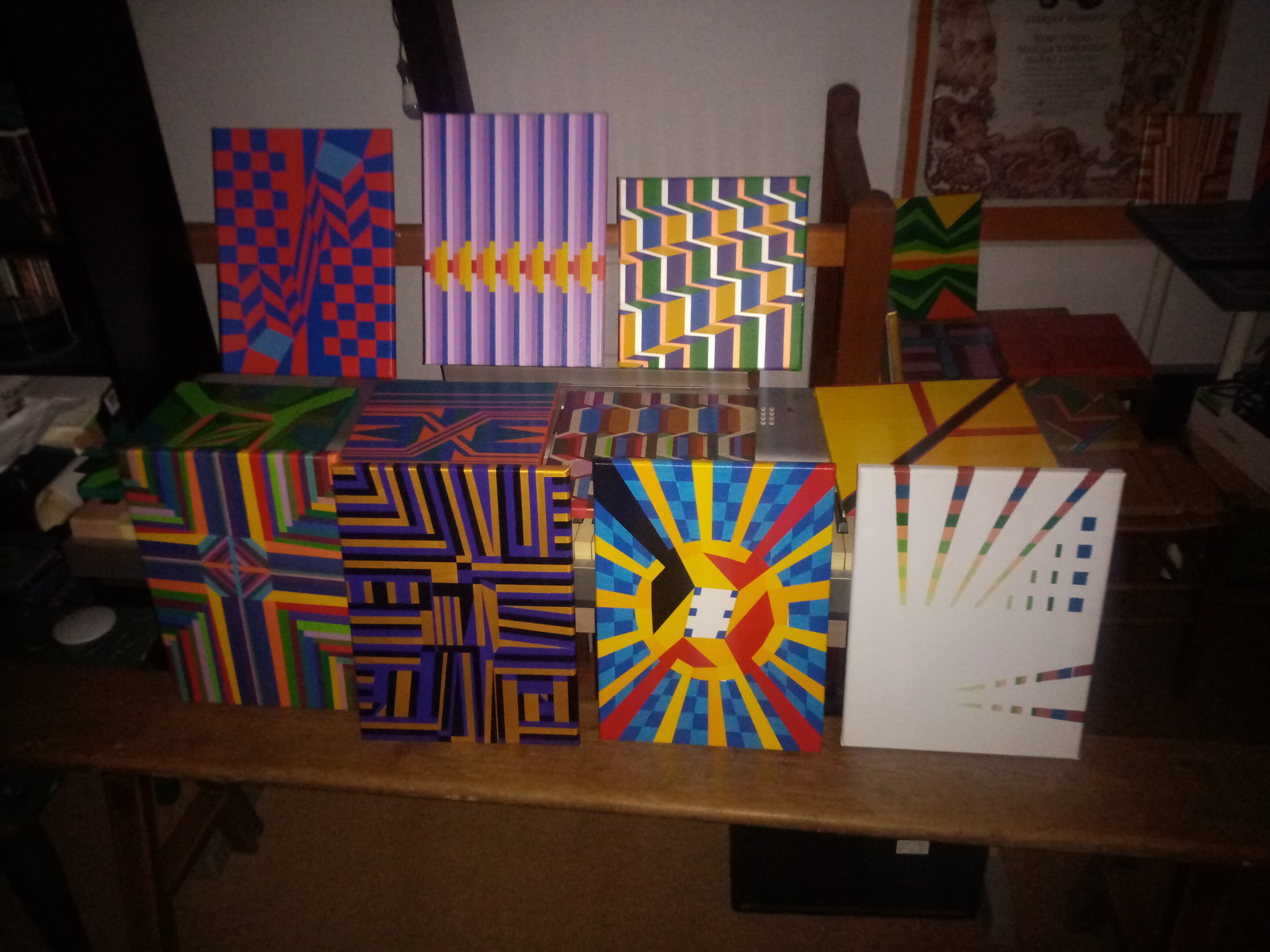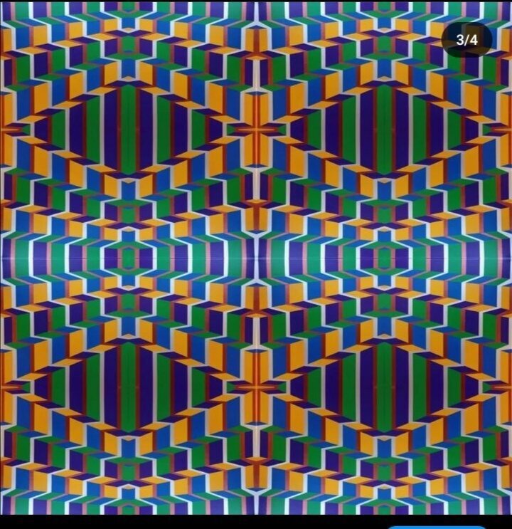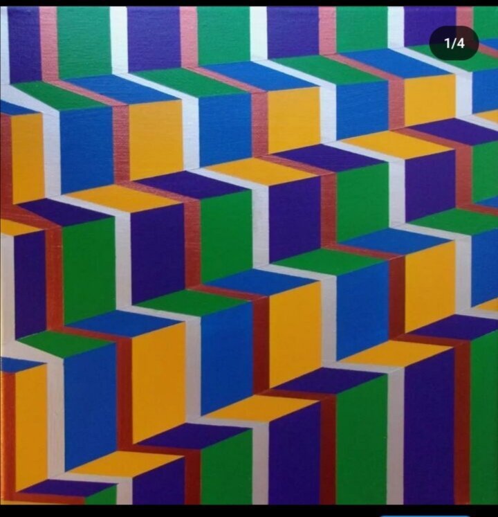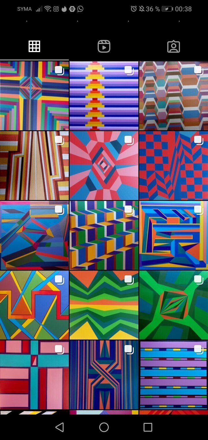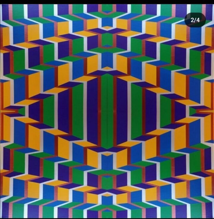 toujours curieux de voir des trucs typiquement fait sur Illustrator sur une toileJe peins au scotch, j'aime les dessins géométriques.