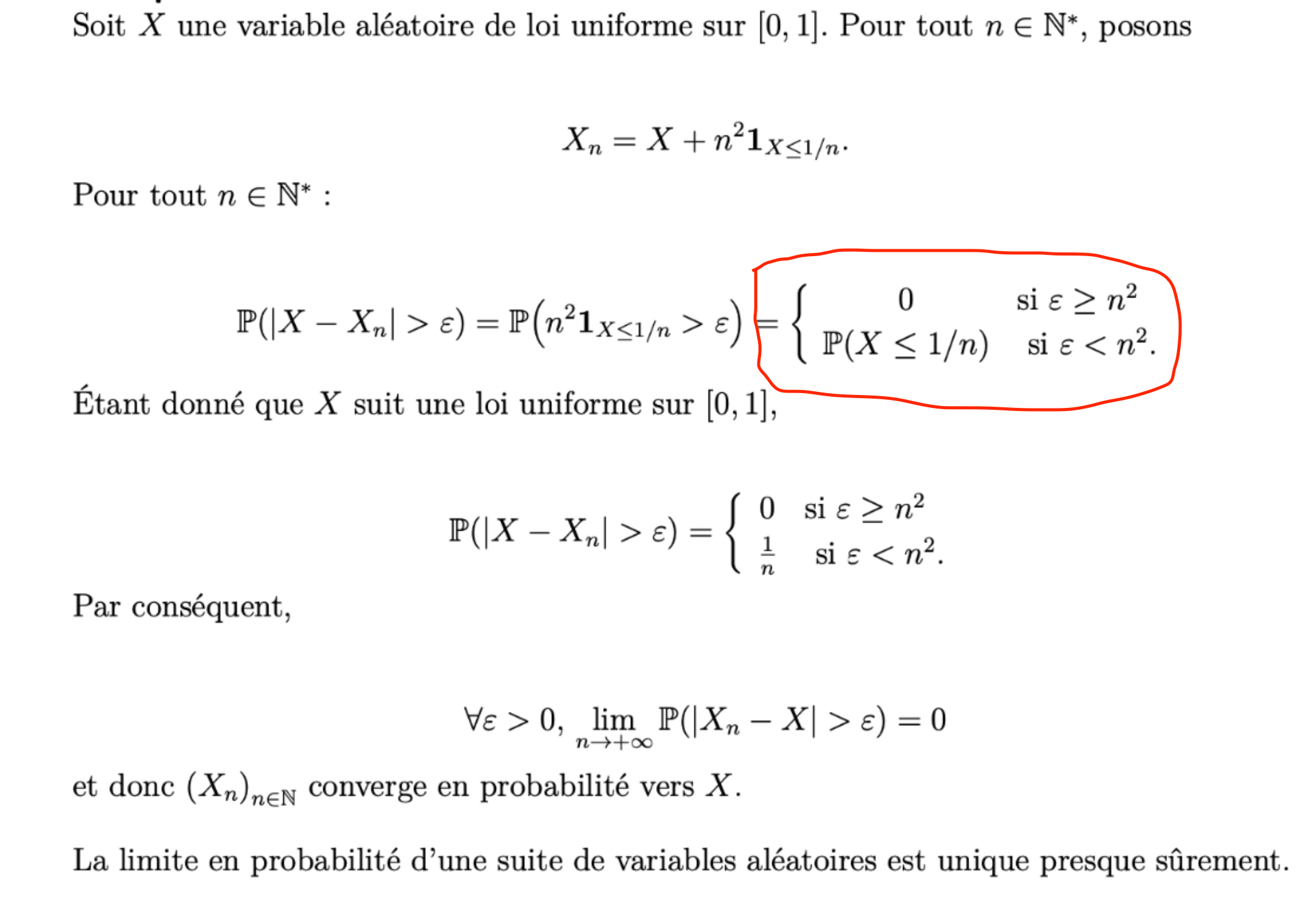 Et comme 1{...} = 0 ou 1, la dissociation des cas entre si X<=1/n (ou >1/n) te permet de construire l'équivalence