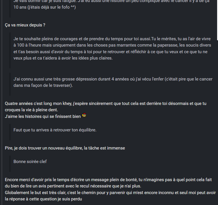 Nous sommes des mois après ce topic, il me faudrait parler et avoir une écoute car cela ne va plus du tout ...