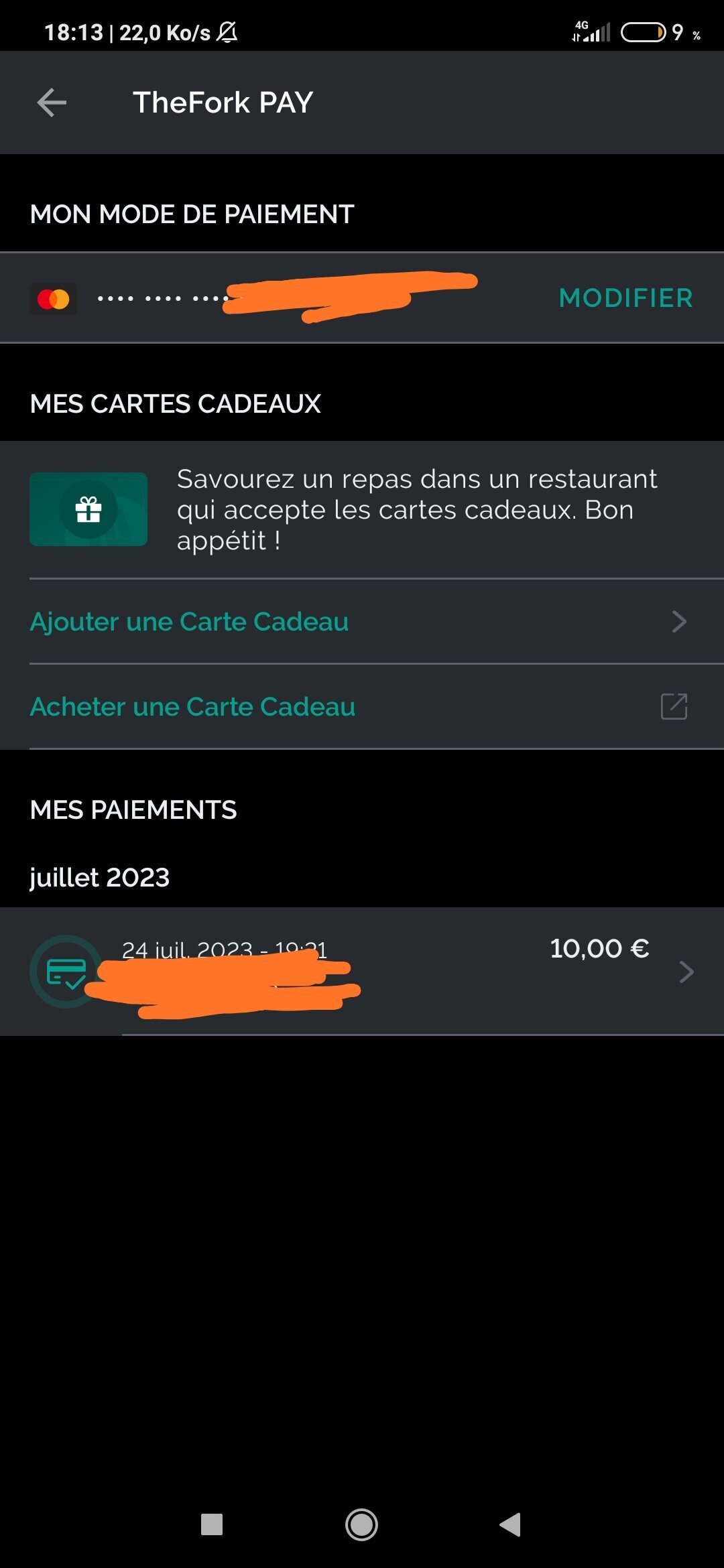 Tu devras payer via FORK pay qui est le système de paiement de l'entreprise THEFORK