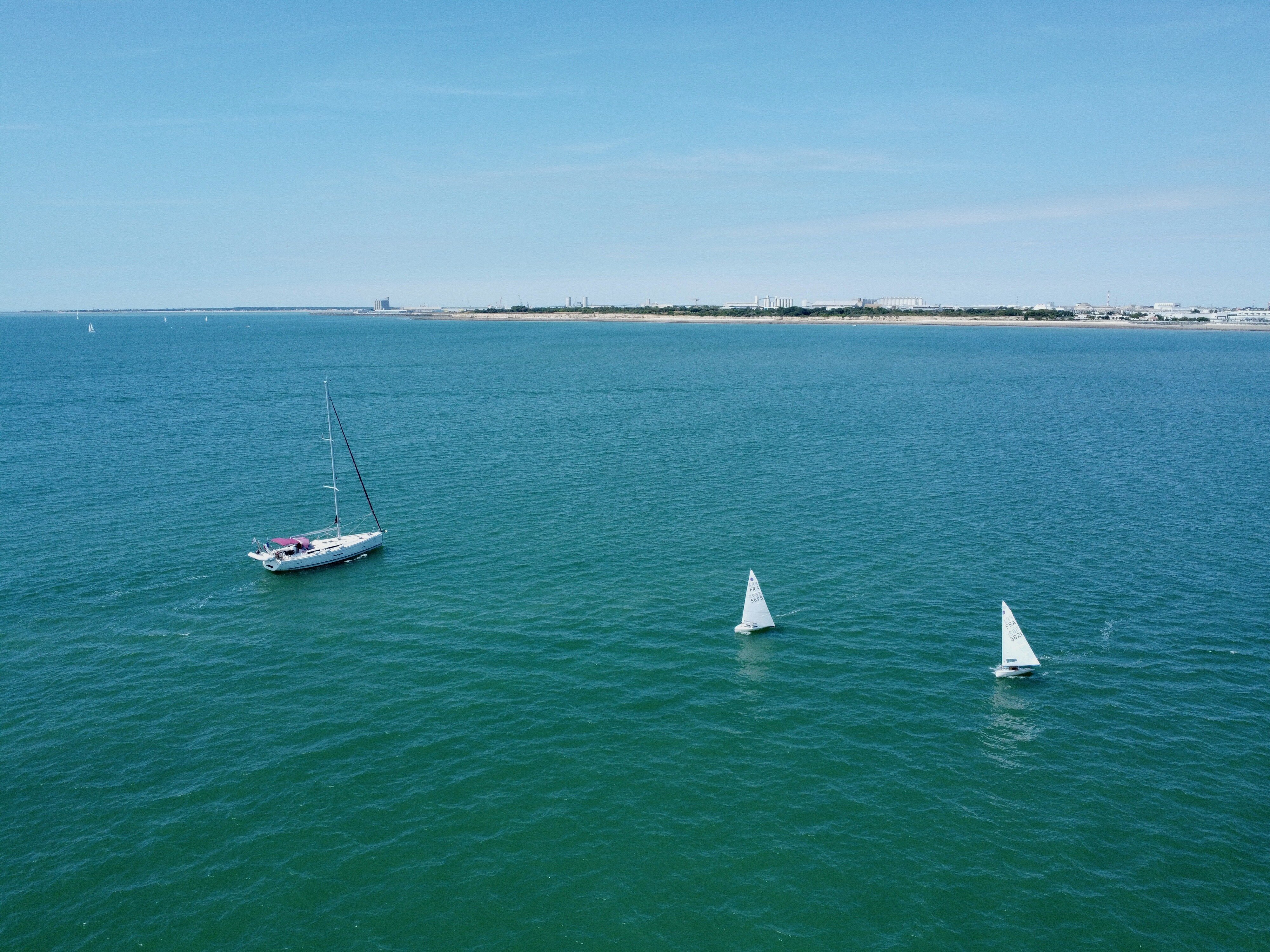 Outre le rapprochement extrême (1 à 2m) de la pointe du phare pour la 3e image j'ai amené le drone à 800m au large (dans un premier temps sans m'en rendre compte) en voulant rattraper les bateaux pour les filmer ahi