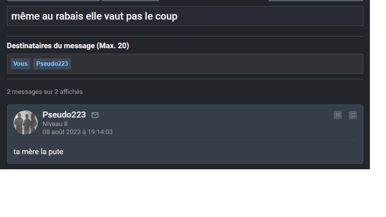 ptdrrrrrrrrrrrr je t'ai insulté pour un topic d'il y a 5 heures mais t'as pas le droit de montrer un MP hein