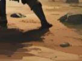 Vous rampez à moitié pour vous éloigner et vous remettre debout et vous commencez à courir à nouveau. Le paysan se rue à votre poursuite et frappe rageusement, vous parvenez à éviter plusieurs assauts mais finissez par prendre un grand coup derrière la tête, qui vous fait chuter à nouveau.
