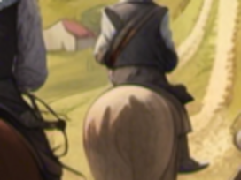 A peine ces paroles sont elles prononcées que les cavaliers vous détachent de l'arbre, et vous amarrent à la selle d'un de leurs chevaux. Le convoi se met ensuite en route en direction du bourg. Vous êtes forcé d'avancer au rythme des cavaliers et chaque pas vous fait atrocement souffrir.
