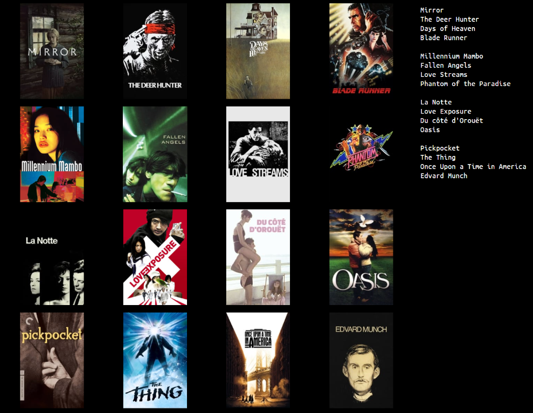 Je comprends ton raisonnement. C'est sûr que ça va énormément varier, d'une personne à une autre, j'aurais d'ailleurs pu mettre d'autres films mais le choix était difficile.