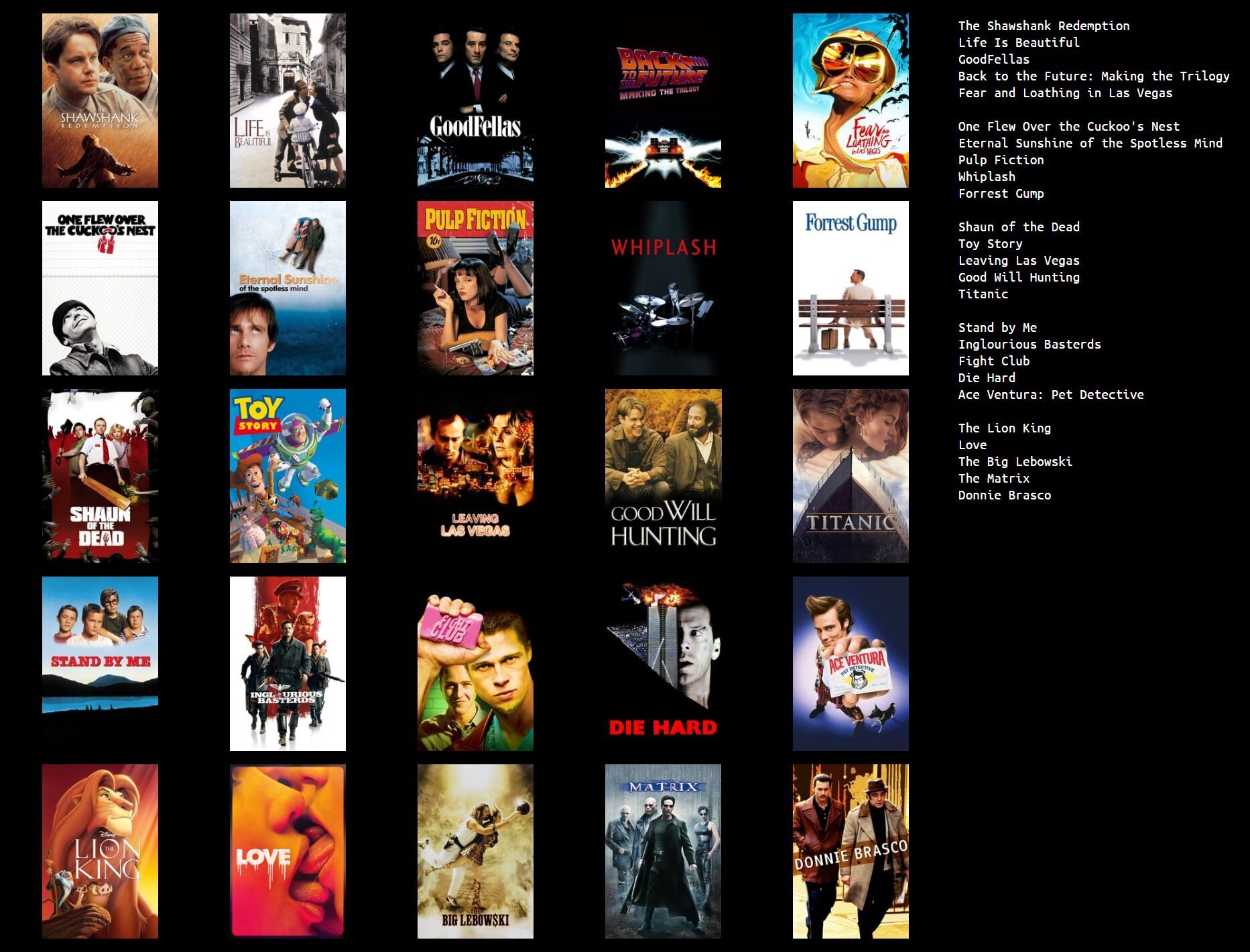 Pas d'ordre particulier. J'aurais bien aimé rajouter certaines séries de films comme Le seigneur des anneaux ou le Hobbit, mais ça prendrait trop de place. Tout est en anglais mais la traduction ne devrait pas trop être difficile, surtout qu'il y a des imagesy'a que beavis et butthead d'intéressant