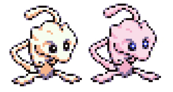 Sauf si je prends en compte le tout premier design de Mew, celui du sprite des versions Rouge et Verte japonaises. A ce moment c'était vraiment LE design de Morimoto qui avait décidé que Mew aurait réellement une apparence entre embryon et foetus. Ce sprite c'est clairement mon design préféré de tout Pokémon