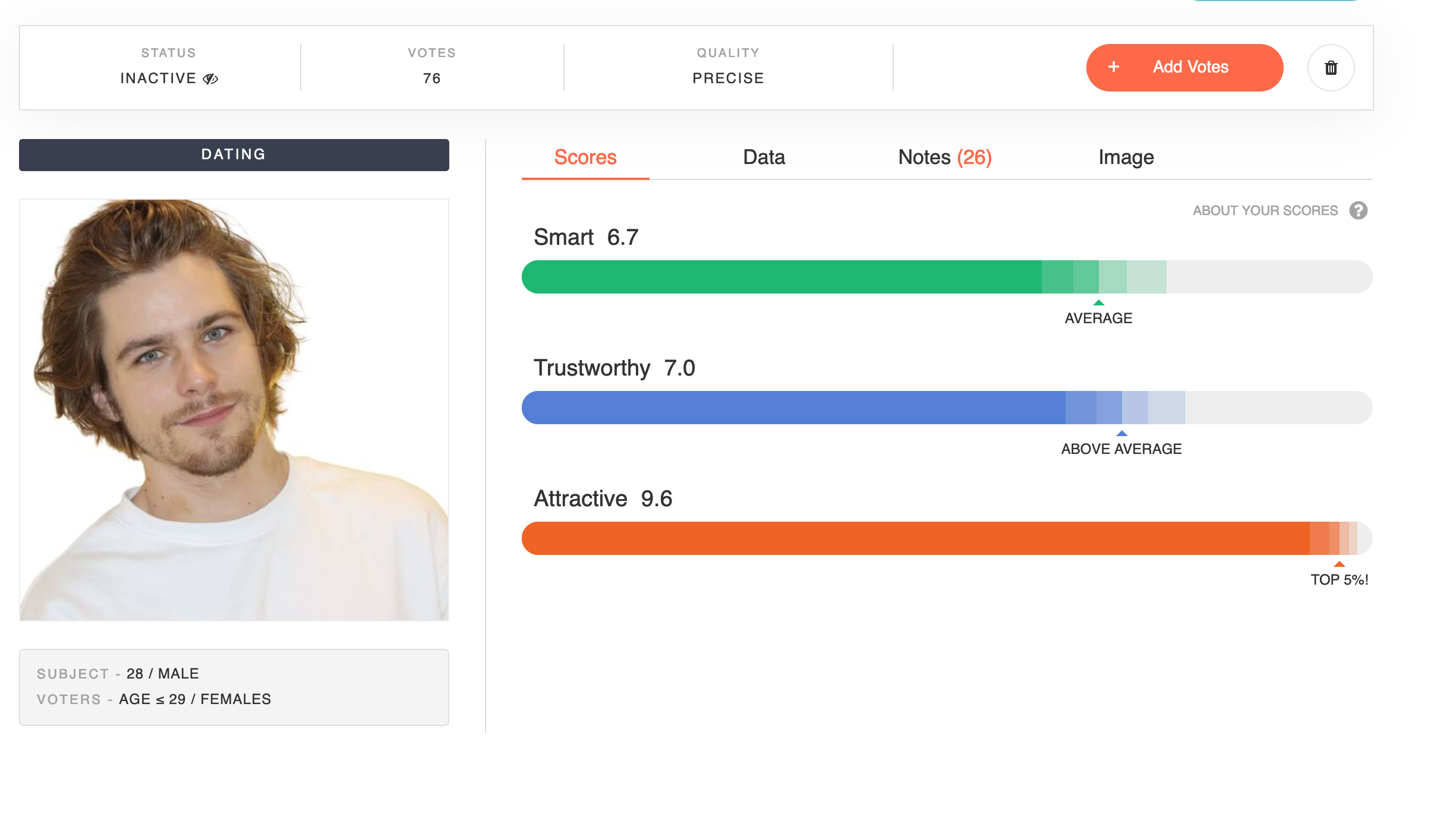 Photofeeler ne vaut rien en d茅pit du fake, j'ai eu 9.6 sur une photo alors que sur les autres je tourne 脿 6![]()