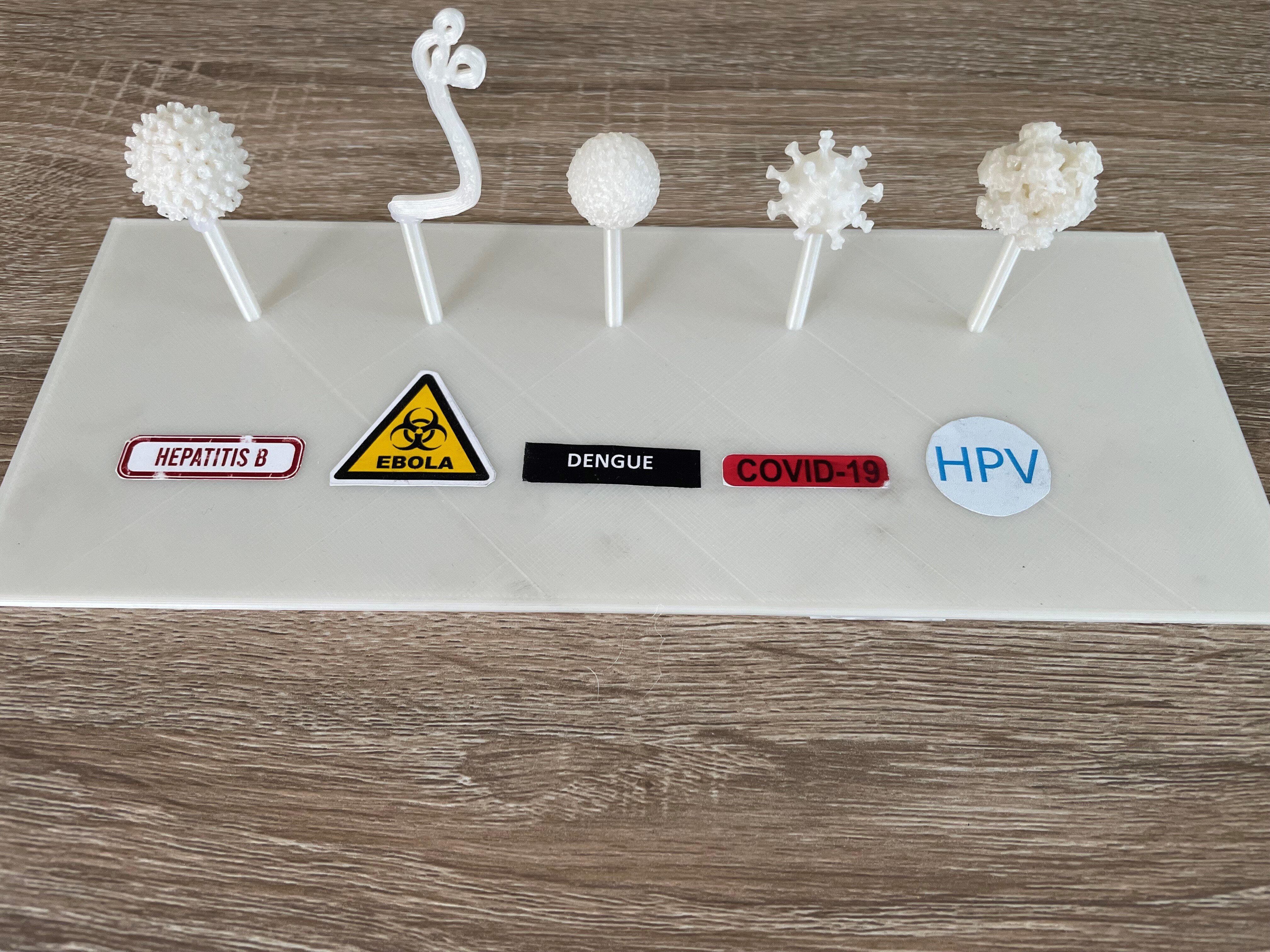 - "La plupart des maladies sont dû à des organismes vivant qui rentre dans le corps, que ce soit par la respiration, par l'alimentation ou autres, on appelle ces organismes microscopiques des virus ou des bactéries. Voici une maquette ou vous trouverez différents virus en grossissement X 1 000 000.