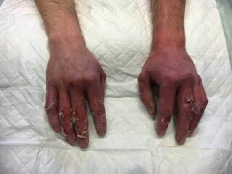 D'ailleurs ça met CB de tps a revenir à la normal ?Tu peux compter plusieurs semaines avant que tes mains soit fonctionnelles, la peau sur le dessus des mains et entre les doigts est très longue à reconstruire car très fine