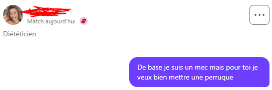 "De base je suis un mec mais pour toi je veux bien mettre une perruque"