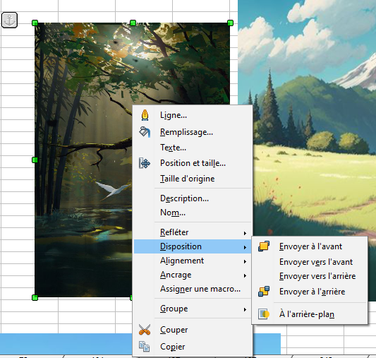Nous savons que l'op utilise OpenOffice, et dans ce logiciel, on peut choisir quelles images mettre en avant/arrière et donc les positionner