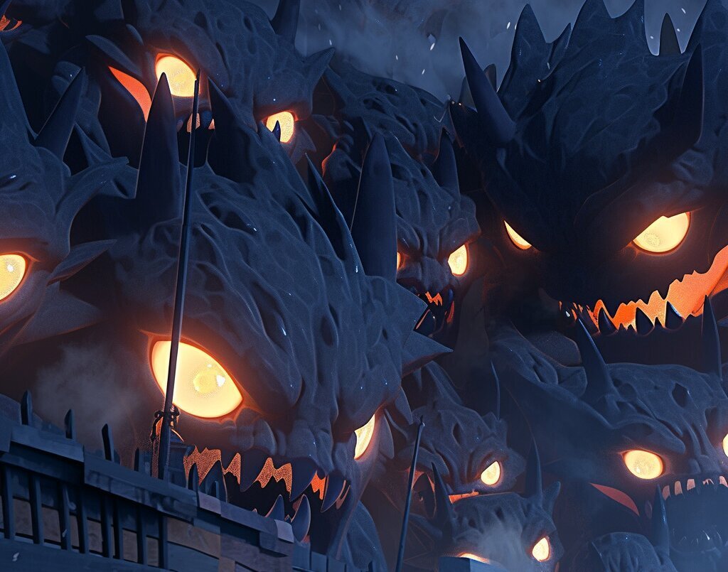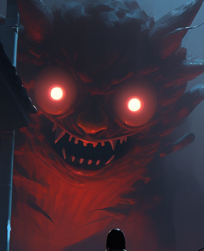 Le Caucherouge ! La plus terrifiant de toutes les créatures que vous ayez eu à affronter grimpe la tour comme un scolopendre, la lumière de ses yeux rouges se reflète sur la tour toute entière.