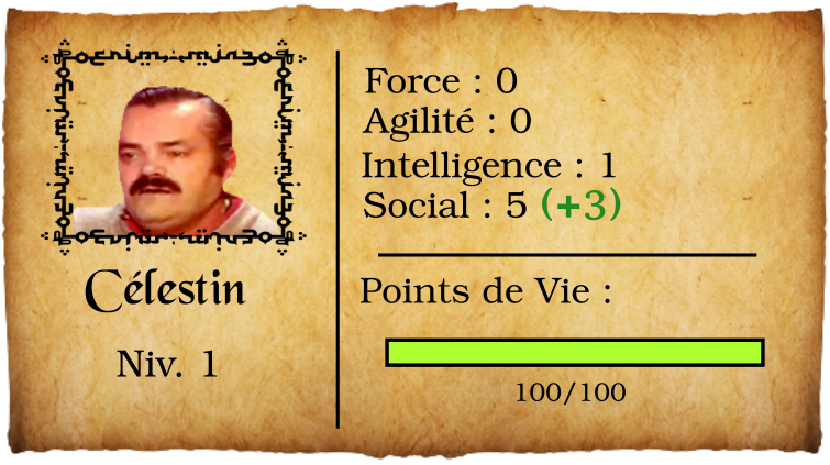 Les 5 points en Social permettent à Célestin de se ressaisir.