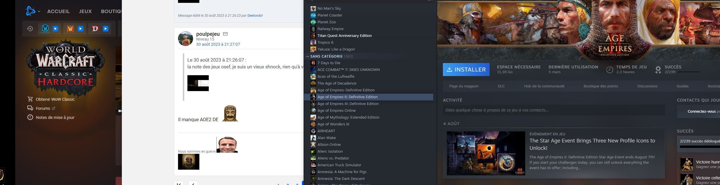 la note des jeux osef, je suis un vieux shnock, rien qu'à voir mes jeux...Le 30 août 2023 à 21:27:49 :