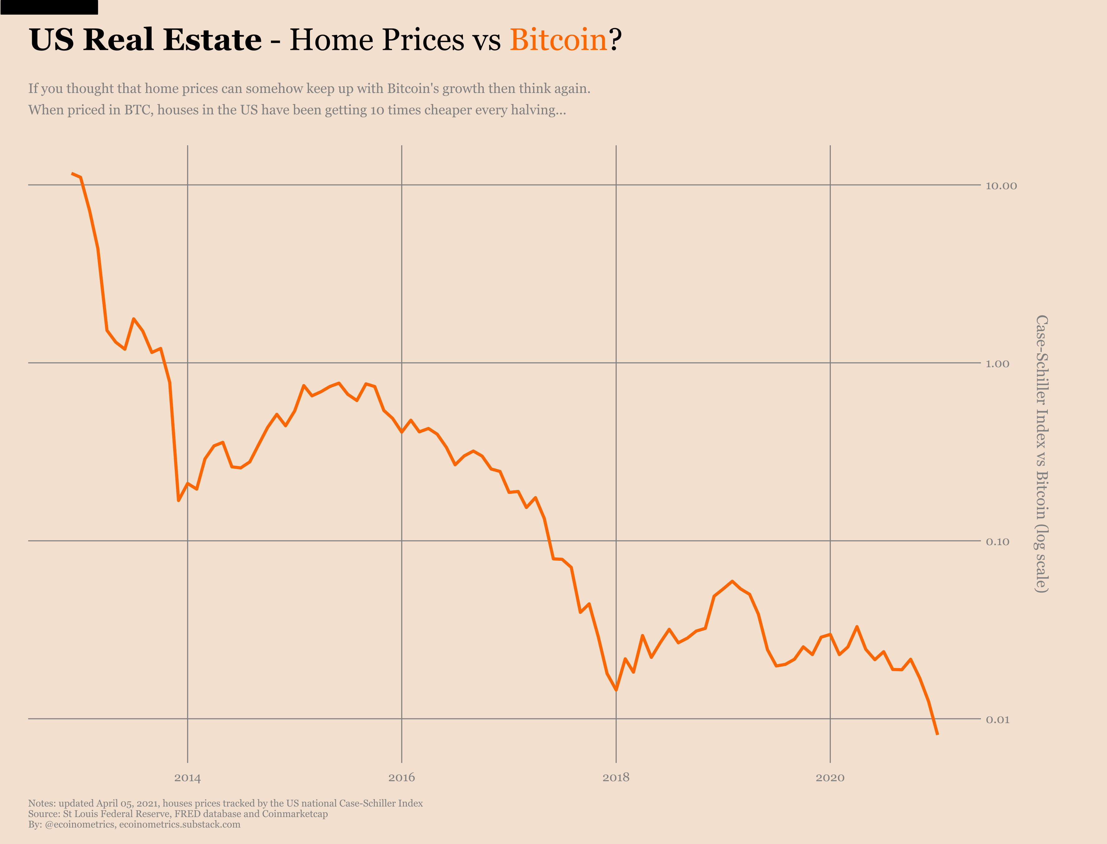 Donc si la seule chose bullish que vous voyait c'est la dévaluation de la monnaie €, ce qui est vrai, acheter des logements n'est pas du tout la bonne méthode pour s'en prémunir. Vous prenez des monnaies MOINS inflationnistes telles que l'Or ou Bitcoin.