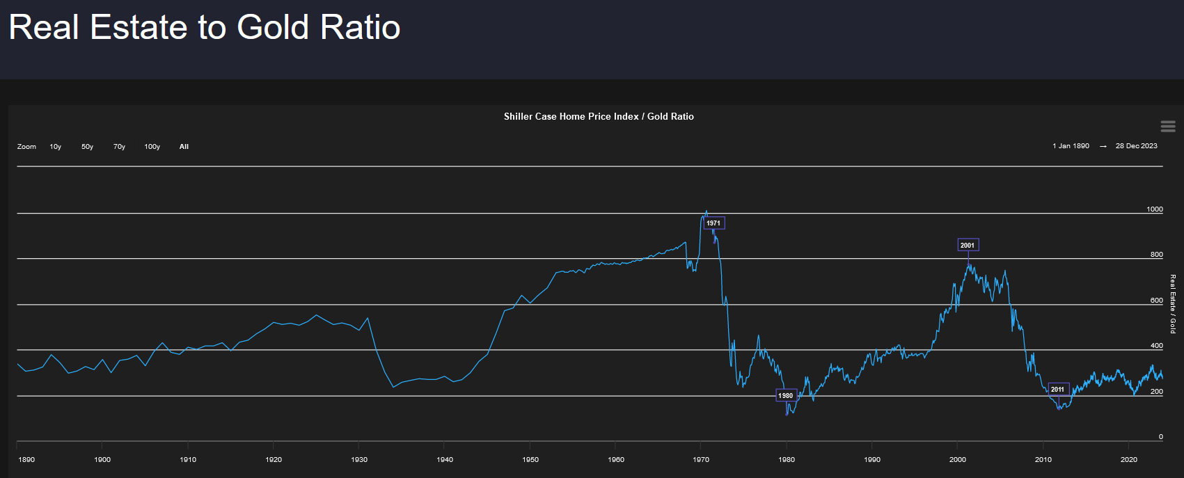 https://www.longtermtrends.net/real-estate-gold-ratio/ : Prix "stable"