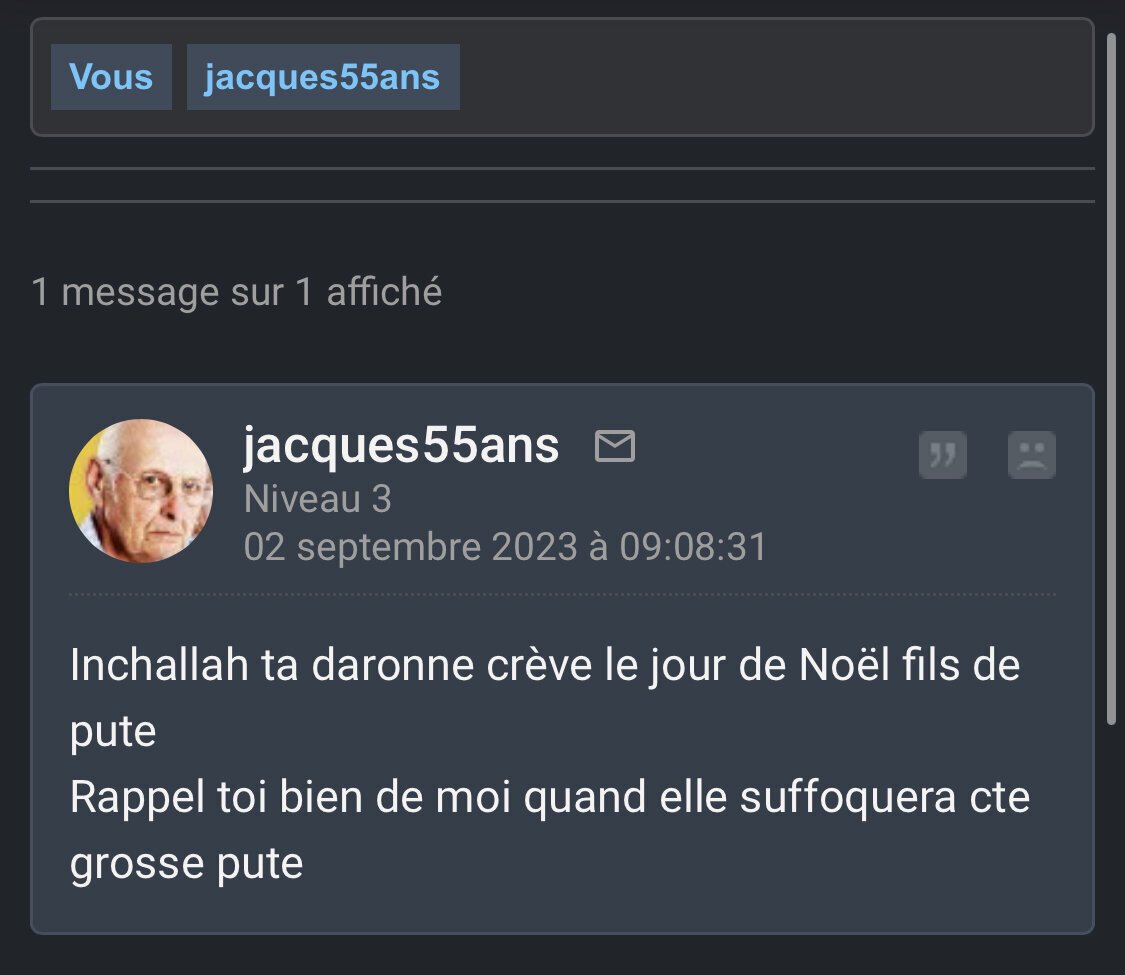 C'est dingue, je peux comprendre que tu ne puisses pas apprécier quelqu'un car sa trogne ne te revient pas, en revanche boucler autant, avoir une haine viscérale envers quelqu'un qui ne t'a personnellement rien fait, je saisis pas du tout.