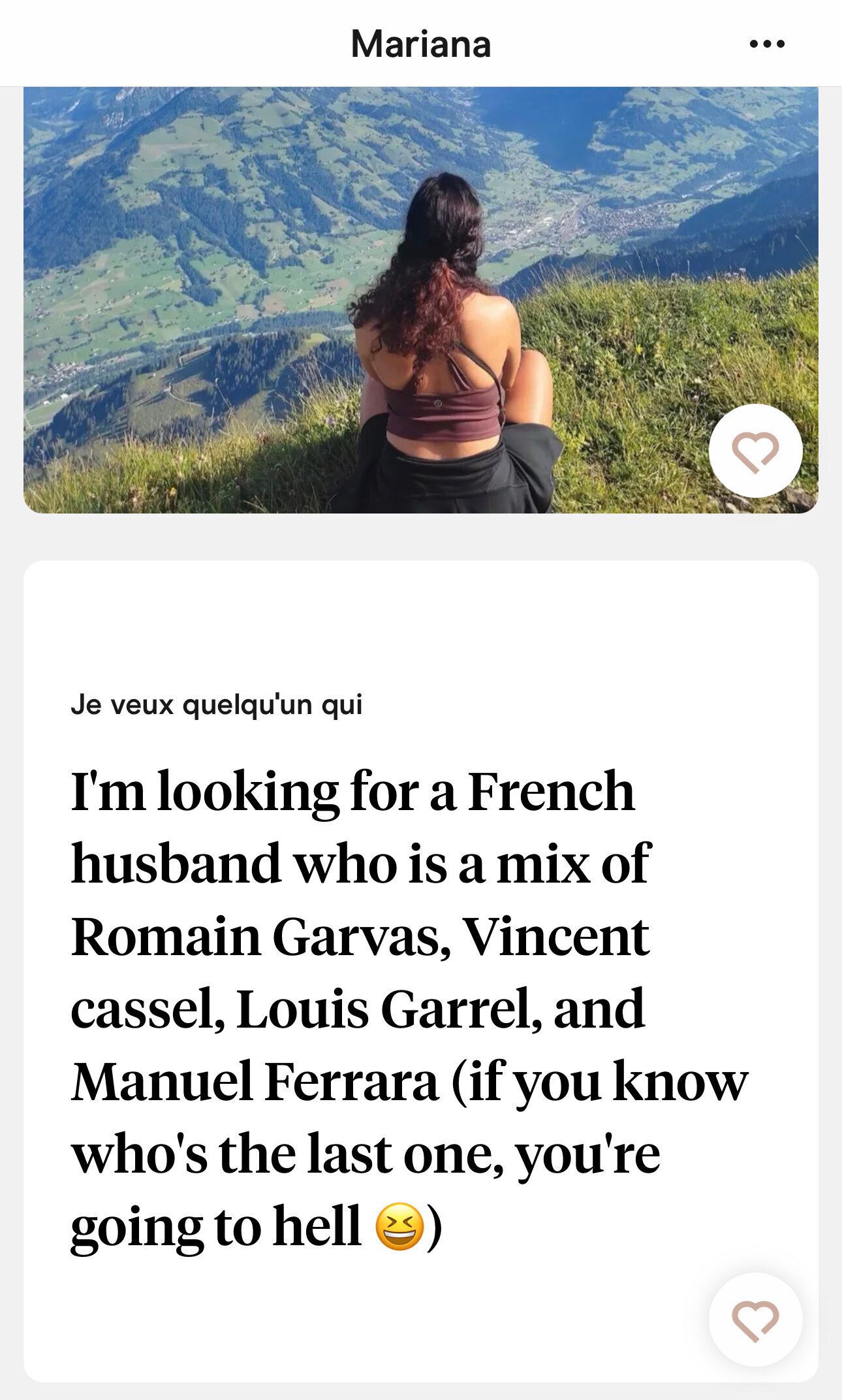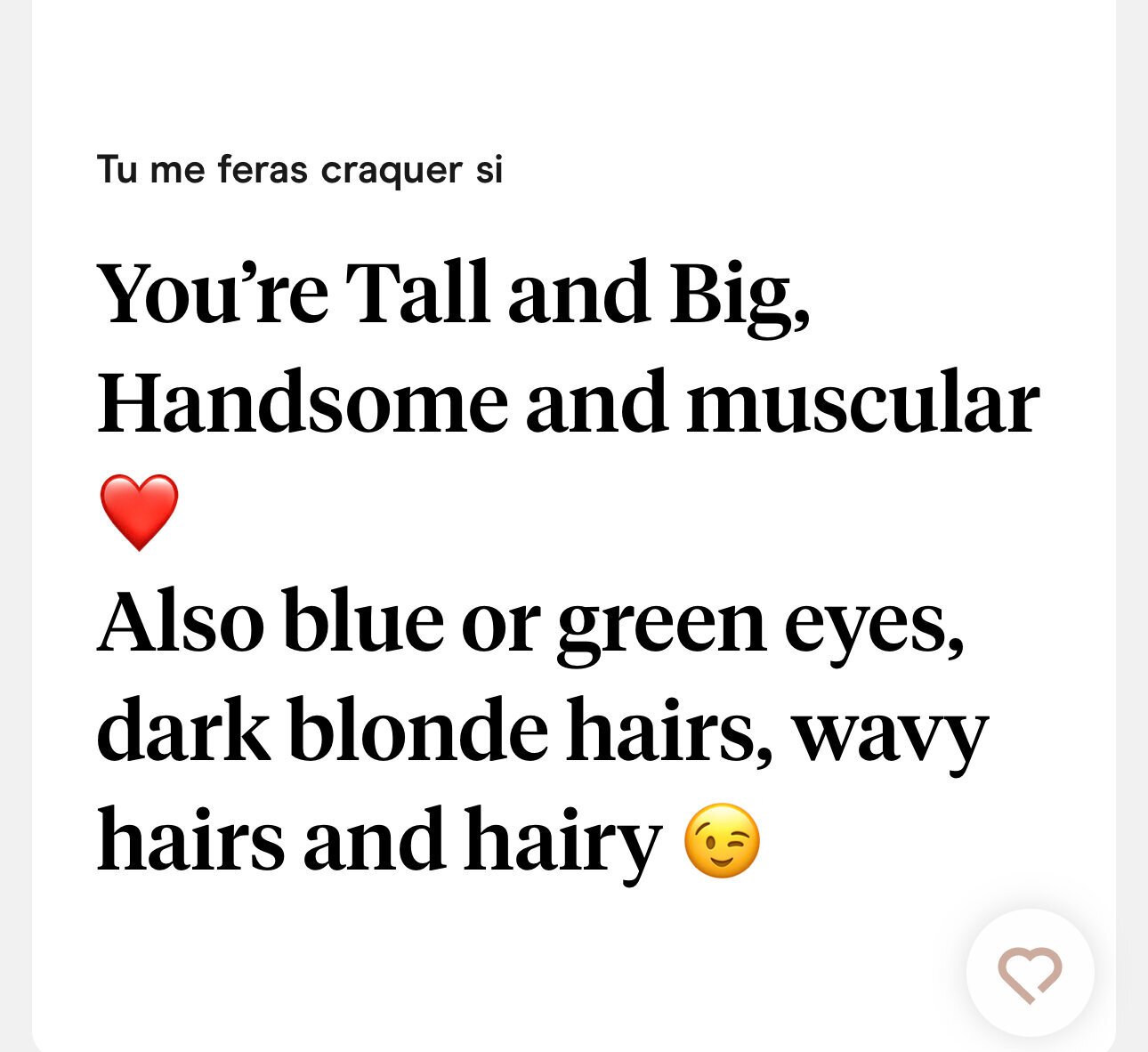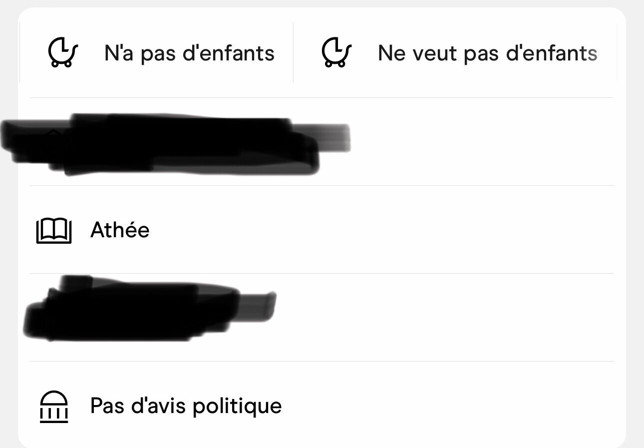 Le classique sur 90% des profils sur Hinge