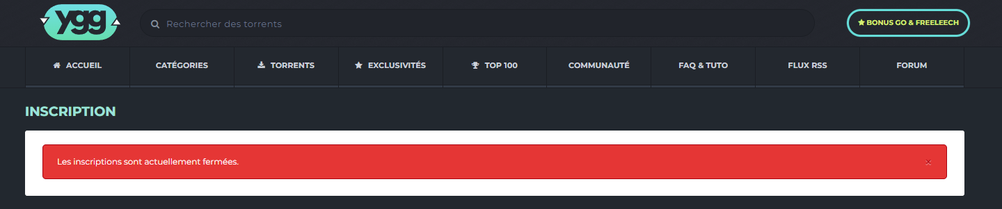 > Quelqu'un sait comment recréer un compte ygg ? je me suis gourré en supprimant un tracker du coup je doit recréer un compte, mais ils me dissent toujours que les inscriptions sont fermer (ce qui n'arrive pas aux autres aparament)