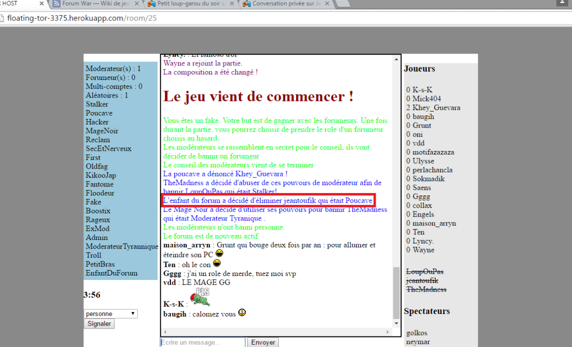J'ai le plaisir d'inaugurer le topic officiel consacré au jeu Forum War ! Forum War est un jeu de stratégie en ligne inspiré du jeu de carte "Les Loups-garous de Thiercelieux", cette version se base sur les délires du 18-25. Jouez directement en cliquant sur ce lien : https://forumwar.up.railway.app/play (pas besoin de créer de compte !)