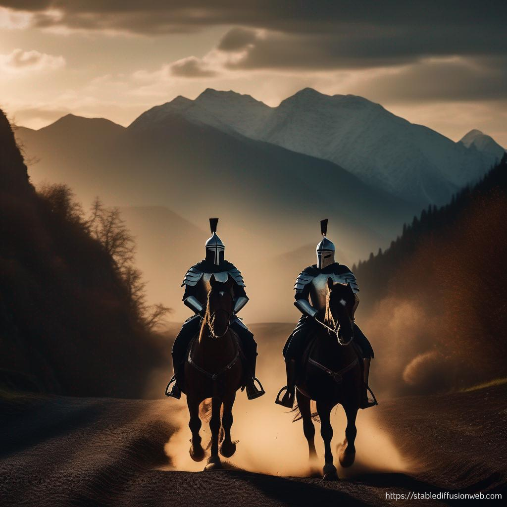 Célestin le suivit, et ensemble, ils marchèrent droit vers la forteresse. Bien en évidence comme ils devaient l’être, la peur de se faire transpercer d’une flèche monta dans leurs esprits à mesure qu’ils s’approchaient, de la même manière qu’à mesure que le Soleil descendait, leurs ombres s’allongeaient silencieusement. Éventuellement, la forteresse sembla répondre à leur arrivée, en ouvrant son pont levis, et en faisant surgir de ses entrailles deux cavaliers qui galopèrent droit vers le duo.