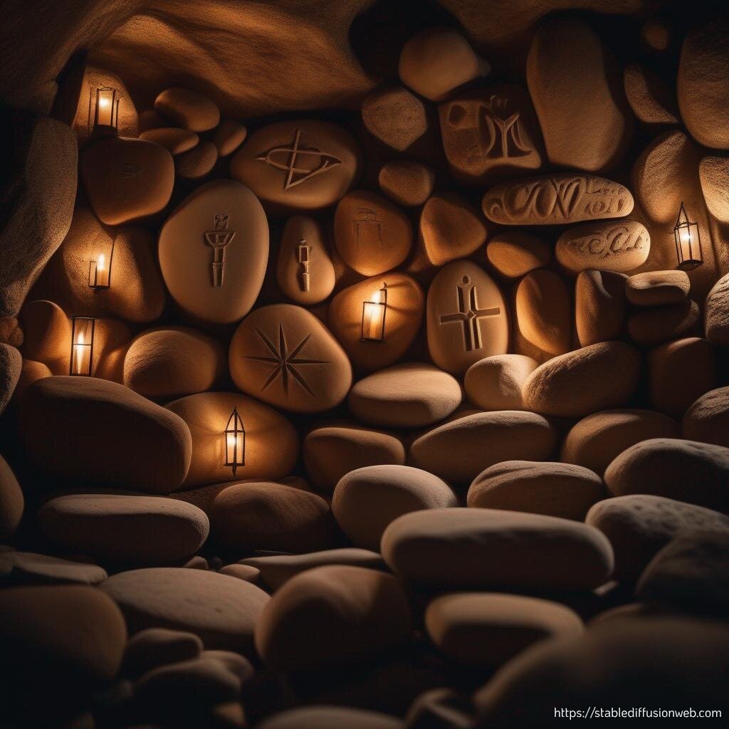 Tandis qu’ils s’enfonçaient dans la grotte, Célestin commença à douter des intentions de ceux qui l’escortaient, surtout lorsqu’ils remarqua sous la flamme des torches des symboles étranges gravés sur les parois de pierre.