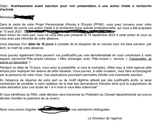 Bah tu verras kheyou, j'ai été radié 2x, une pour avoir eu la flemme d'aller a un atelier et l'autre car j'étais trop bourré pour aller au rdv avec ma conseillère ayaaoo